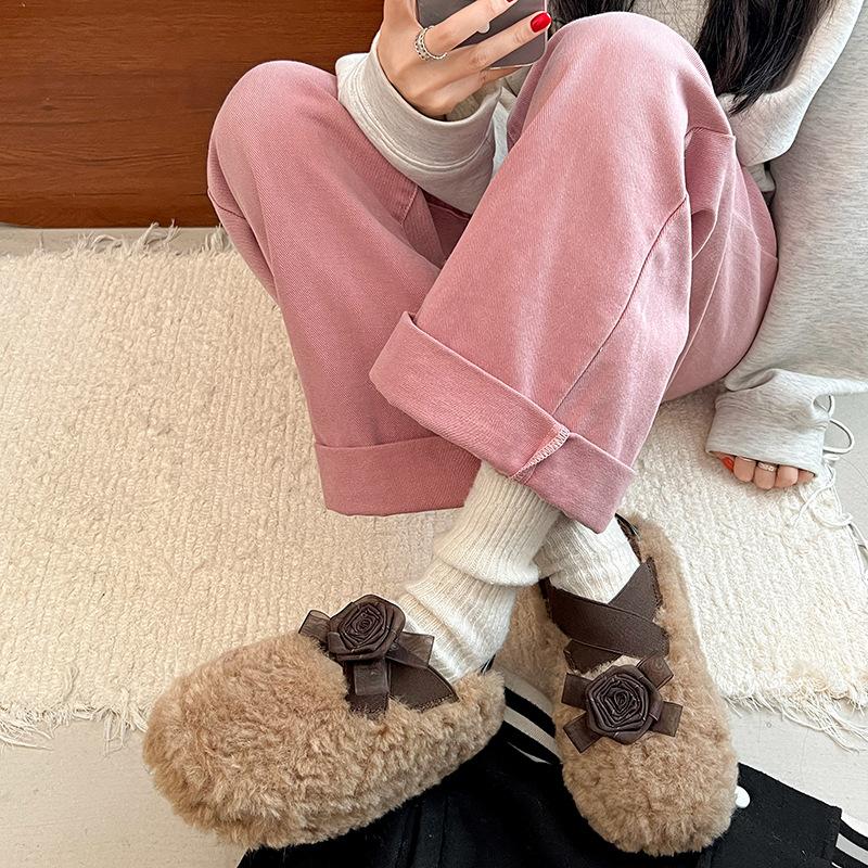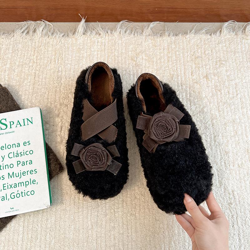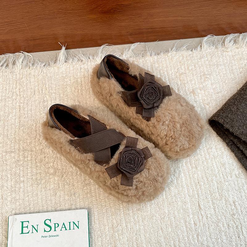 Модный тренд ретро платформа пушистые туфли женские 2025 новые осенне-зимние бархатные увеличивающие рост балетки Мэри Джейн хлопковые туфли