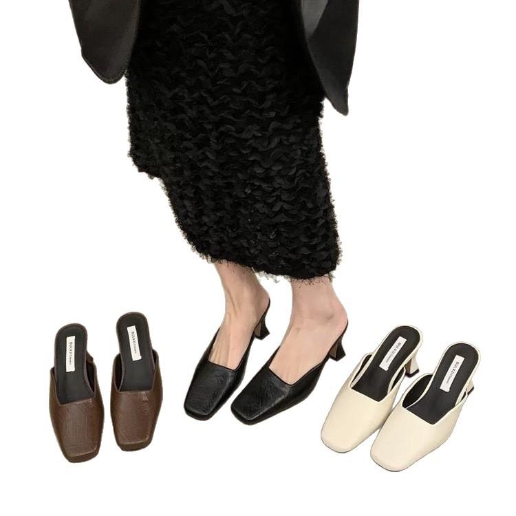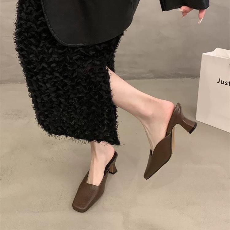 Темпераментные туфли на высоком каблуке с сумкой на носке, полушлепанцы для улицы, женская обувь весна и лето 2025, новые, на толстом каблуке, не утомляют ноги, шлепанцы с мелким вырезом
