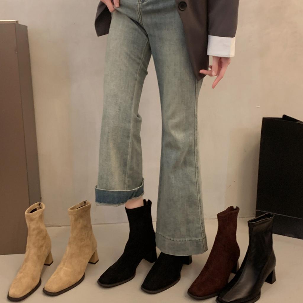 Женские короткие ботильоны на высоком каблуке, новая коллекция весна-осень 2025, одинарные ботинки на толстом каблуке, французские маленькие ботильоны до щиколотки, задняя молния, квадратный носок, эластичные тонкие ботинки