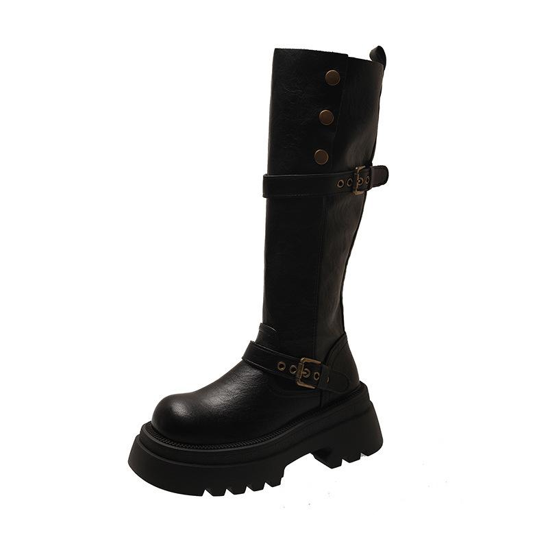 Большой размер ботинки Maillard женские 2025 осень и зима новые толстые мм толстые ноги увеличивающие рост рыцарские ботинки маленькие высокие ботинки