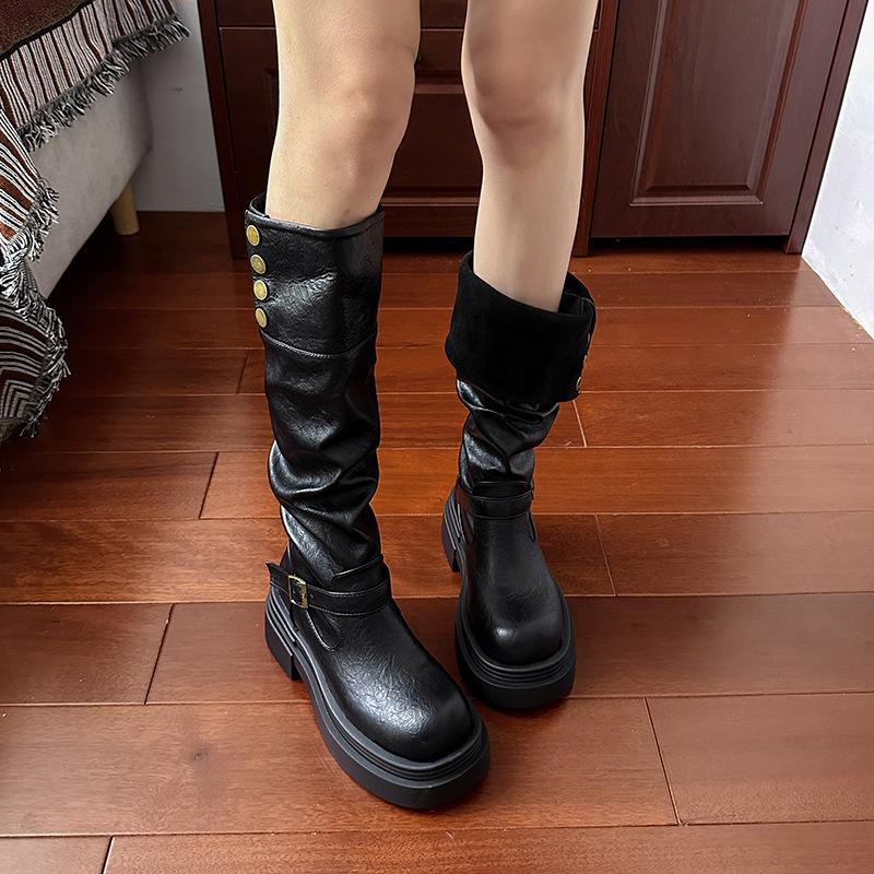 Британский стиль черные высокие сапоги-чулки женские 2025 новые осенне-зимние на толстой подошве увеличивающие рост западные рыцарские сапоги ботинки Мартин