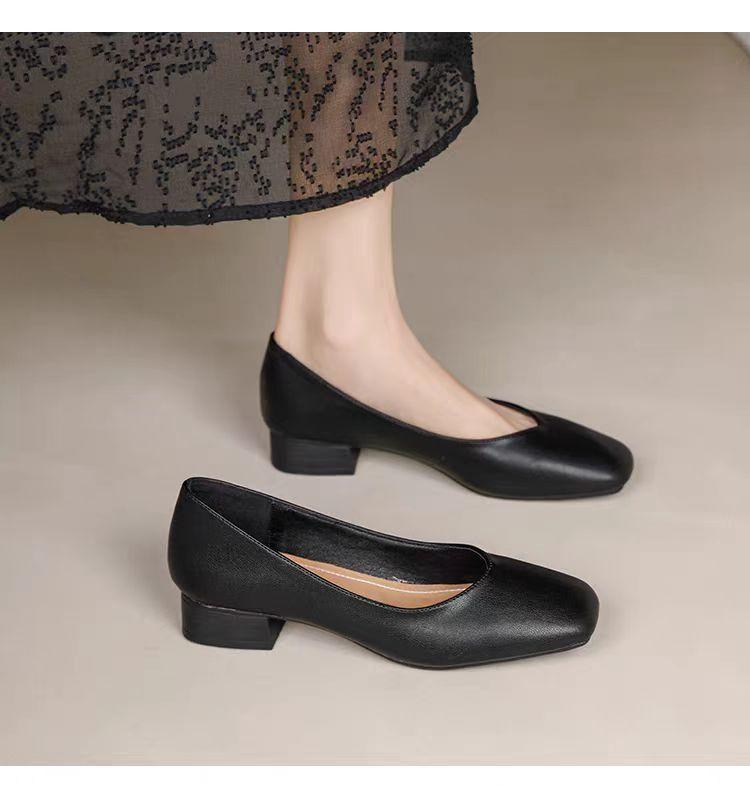 2025 новые туфли на толстом каблуке, нежные феи, квадратный носок, плоская подошва, слипоны, мягкая подошва, универсальные женские туфли Doudou, женские