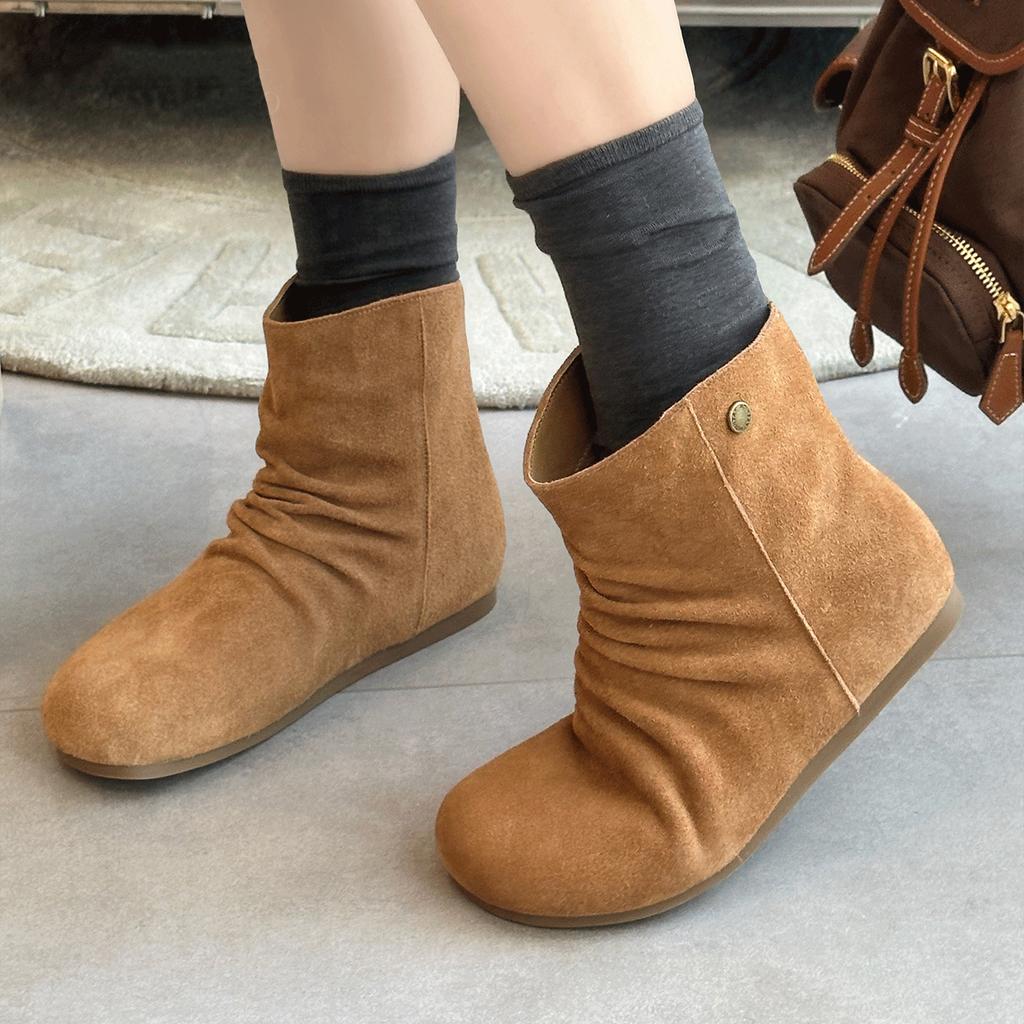 Версия из коровьей кожи~ ретро-стиль новые плиссированные матовые кожаные с внутренней высотой каблука женские универсальные с круглым носком выглядят стройнящими