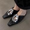 Версия из овчины~ Французские квадратные с пайетками крутые тапочки на одном каблуке, темпераментная серебристая сумка на носок, женские полутапочки