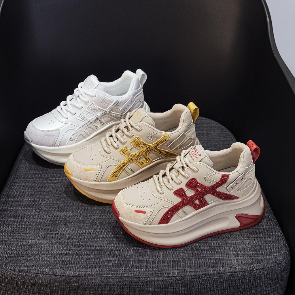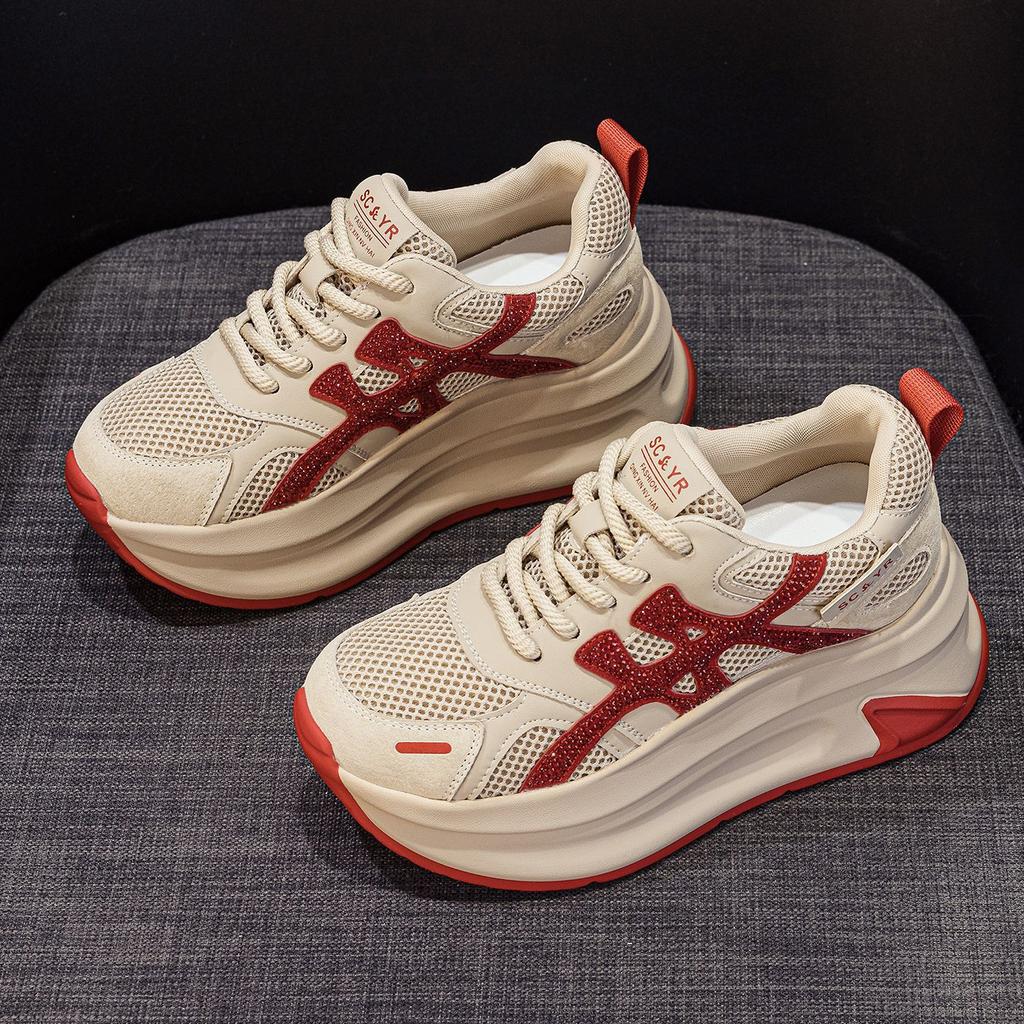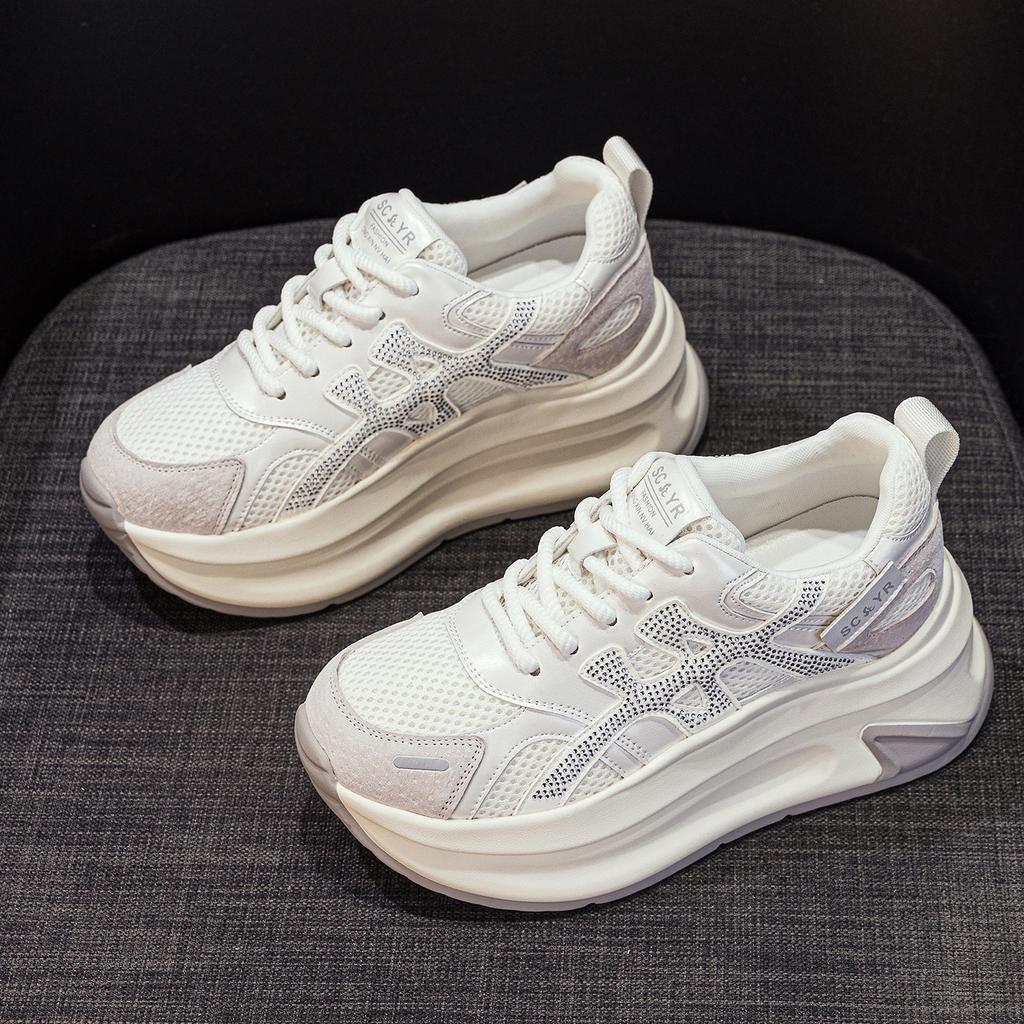 Кроссовки на толстой подошве сетка женские осень 2025 новые повседневные модные универсальные взрывная версия Douyin увеличивающие рост женские туфли