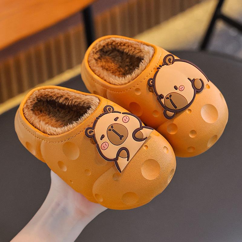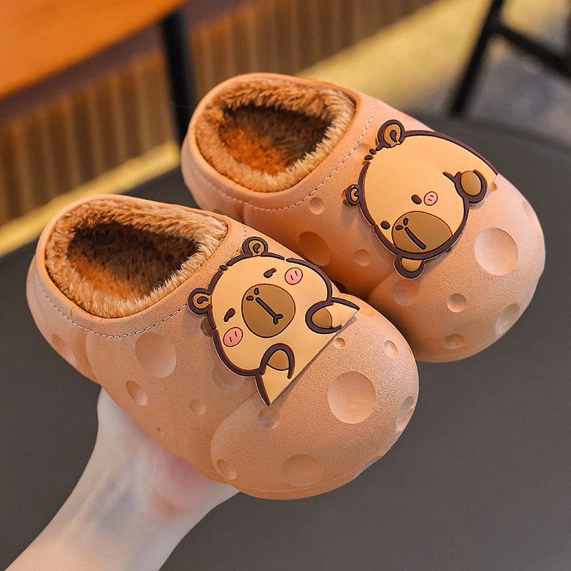 Детские хлопковые тапочки на осень и зиму для мальчиков и девочек, теплые и плюшевые, водонепроницаемые, детские сумки среднего и большого размера с хлопковыми каблуками