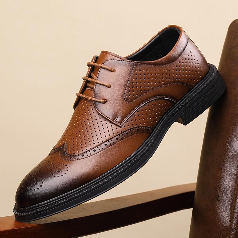 Мужская кожаная обувь из натуральной кожи, дышащие броги, деловая деловая повседневная обувь с острым носком в британском стиле — купить товар онлайн с бесплатной доставкой по всему миру!
