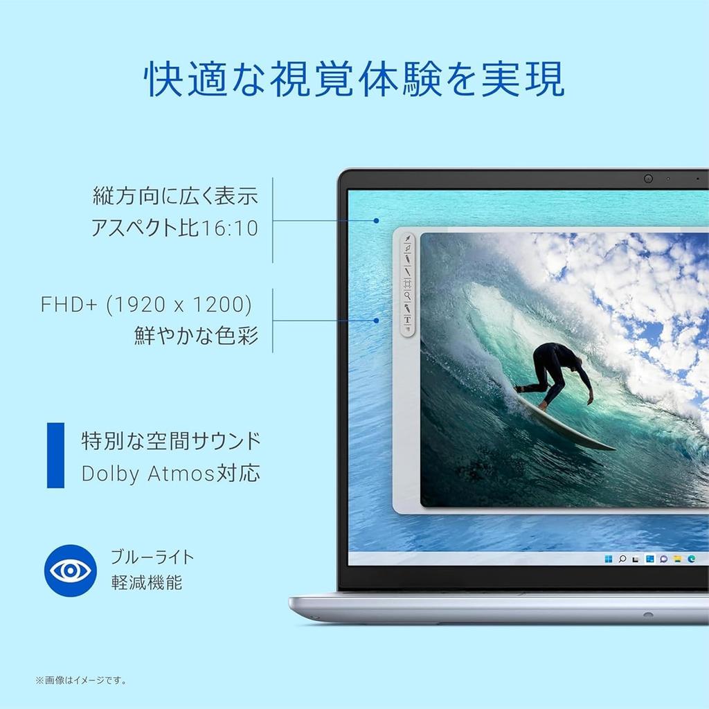 The Full HD camera boasts a wide dynamic range and features temporal noise reduction for a better collaboration experience. Built-in AI noise reduction technology enhances voice clarity. Hear more. Feel more. Enjoy a 3D audio experience with Dolby Atmos. Plus, a built-in mechanical shutter provides enhanced privacy. Leverage AI for a more comfortable work and personal life. The Inspiron 14, equipped with the AMD Ryzen 7 8840U processor, lets you use AI as your personal assistant. AI supports your everyday tasks, from managing budgets and schedules to composing email replies. Create engaging, creative content with AI-enabled features at your fingertips. Leverage AI to efficiently design and optimize workflows in the workplace. Product Description: Product Number: DELL Inspiron 14 5445 Operating System: Windows 11 Home 64-bit (Japanese version) Processor:
