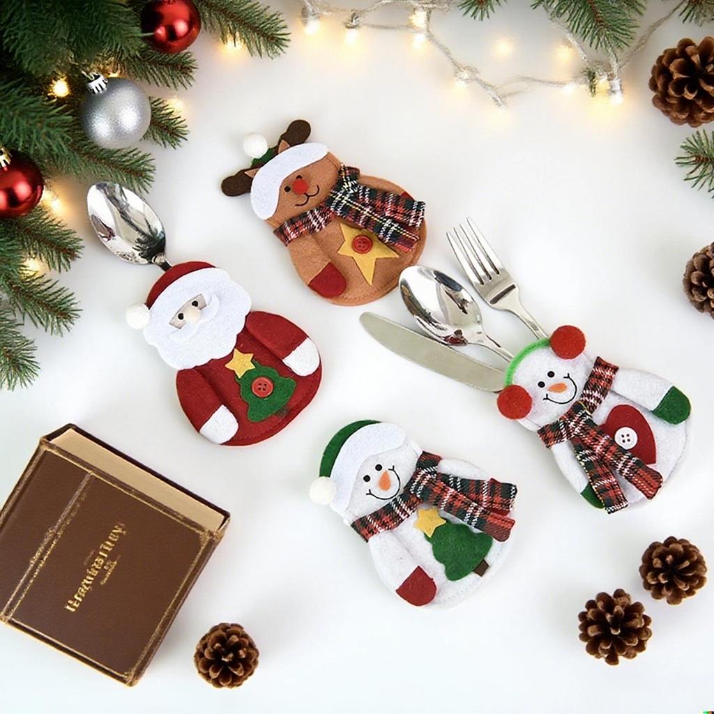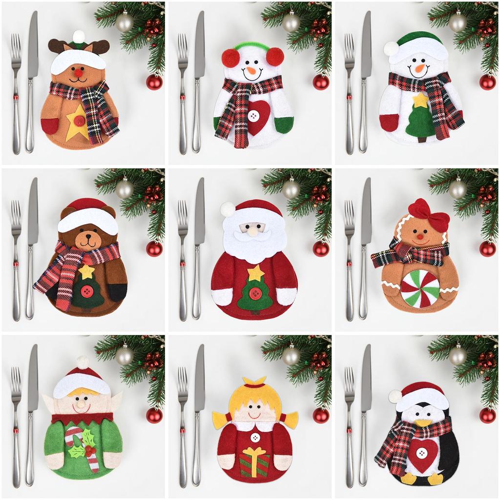 Креативный мультяшный рождественский набор посуды: Набор Нож, Вилка и Декоративная Кукла для Праздничного Обеда
