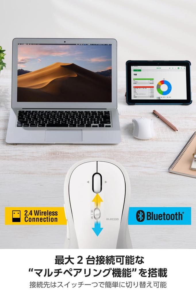 Elecom Беспроводная мышь OSMOD Seven 7 с 2 7-кнопочным колесиком наклона, тихая, Bluetooth, 2,4 ГГц, мульти-сопряжение (up Устройства), Кнопки, Колесо, Большие, (M-MY40MBSWH-G)