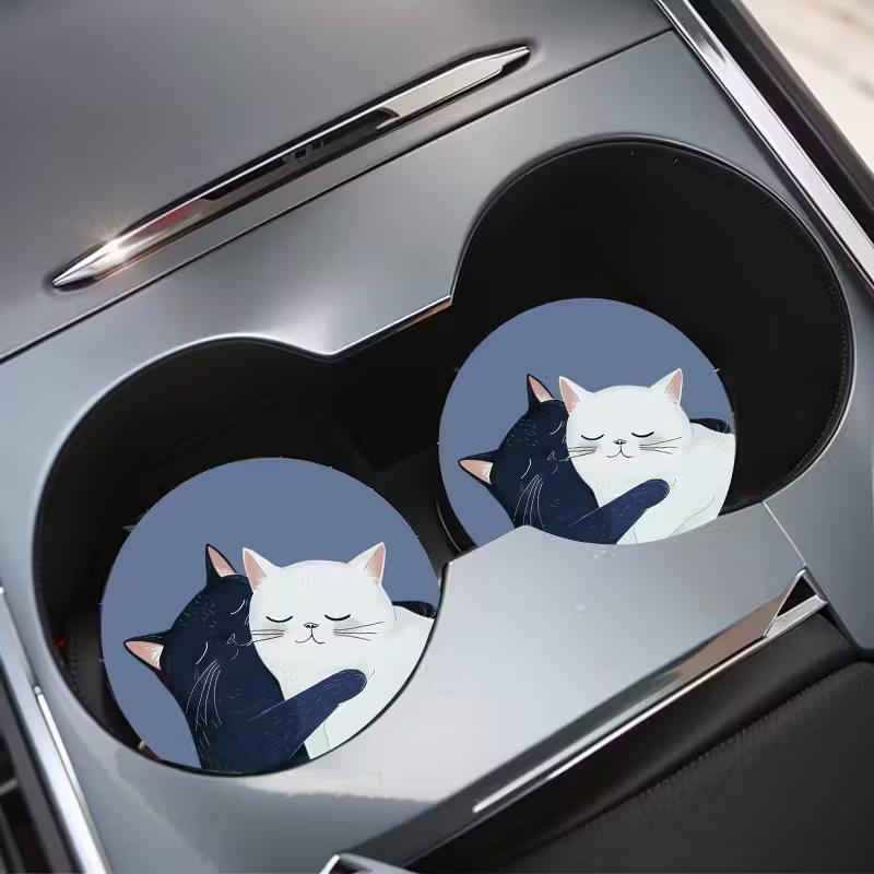 2 шт. Синий Обнимающий Кот Автомобильный Коврик-Подставка для Чашки Противоскользящий Коврик Подставка для Бутылки Подставка для Чашки Автомобильный Интерьер Противоскользящая Подставка для Чашки