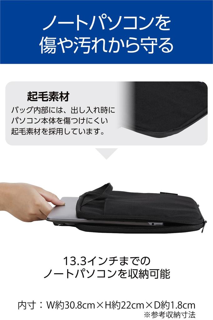 Elecom Внутренняя сумка с ручкой и карманом, 13,3 дюйма, Черный, BM-IBHC13BK