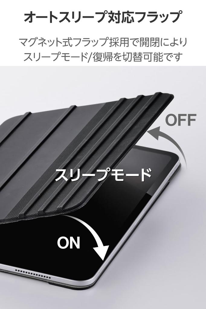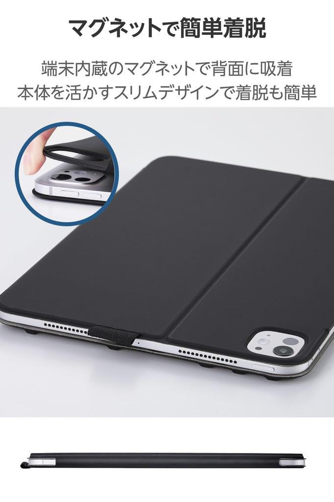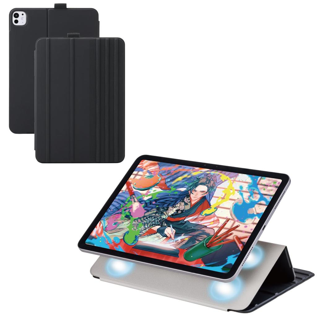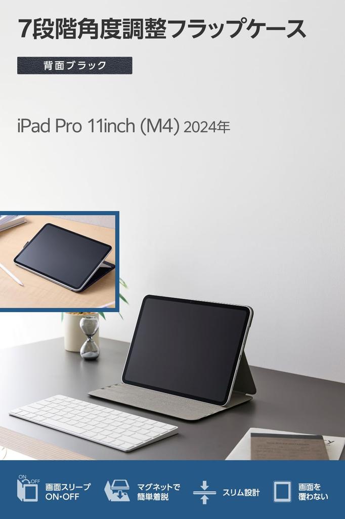 ELECOM iPad Pro Flap Soft 8 Angle Sleep 11-inch (M4) Case, Case, Leather, Drawing, Settings, Mode, Black, TB-A25PMWVDBK