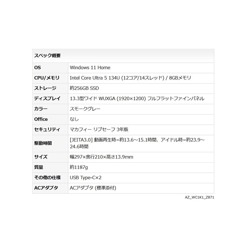Fujitsu FMV Note C Сделано в Японии Core Ultra 8 ГБ 256 ГБ Без WC1-K1 Ноутбук, (Win 11, 13,3-дюймовый, 5, ОЗУ, SSD, Office) AZ_WC1K1_Z871