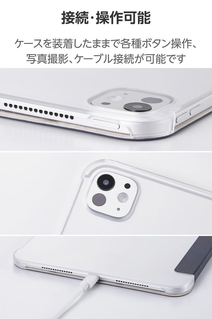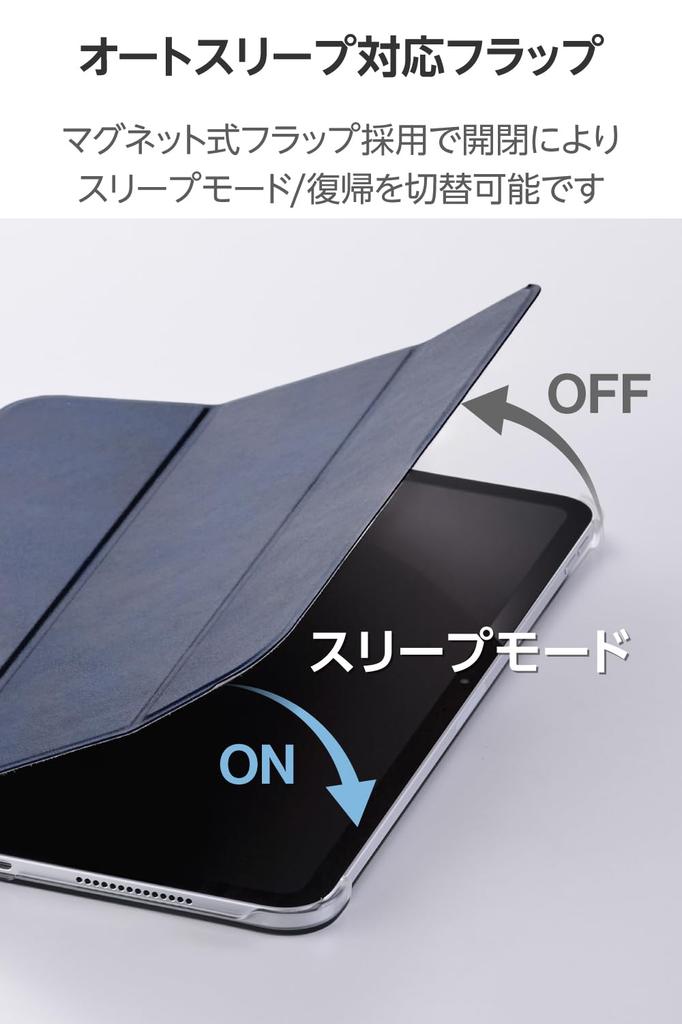 ELECOM iPad Pro Case Cover with Two Adjustable Angle Clear Sleep Navy 11-inch (M4) Settings, Flap, Mode, Blue, TB-A25PMWVNV