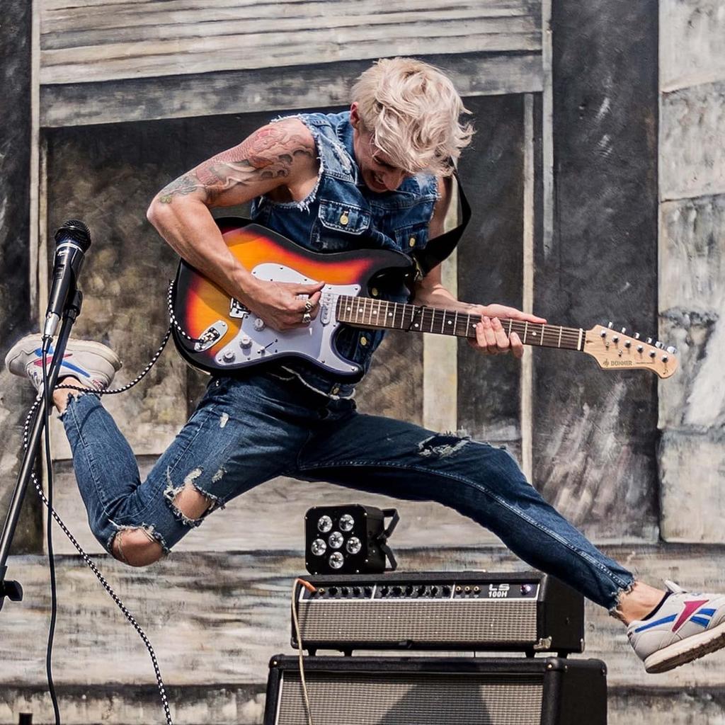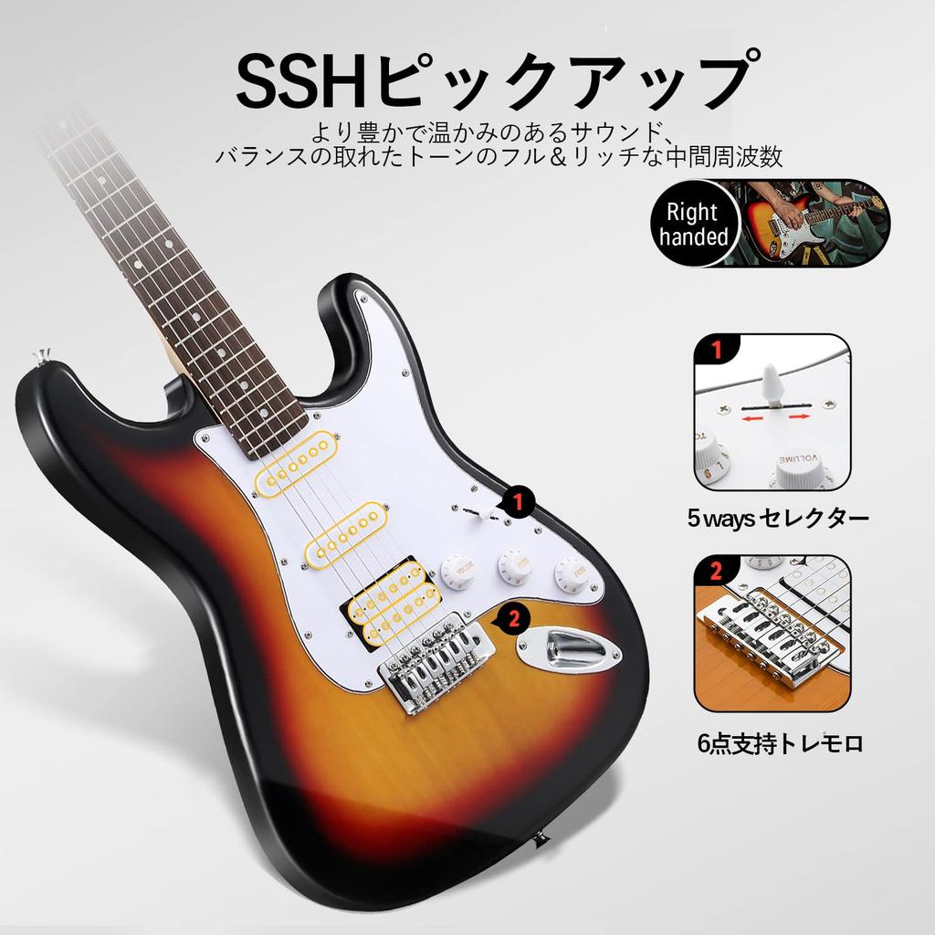 Donner Электрогитара для начинающих ST SSH звукосниматели тополь санберст с мини и набором аксессуаров DST-100S Набор, Тип, Раскладка, 39-дюймовый полноразмерный, Дерево, Отделка,