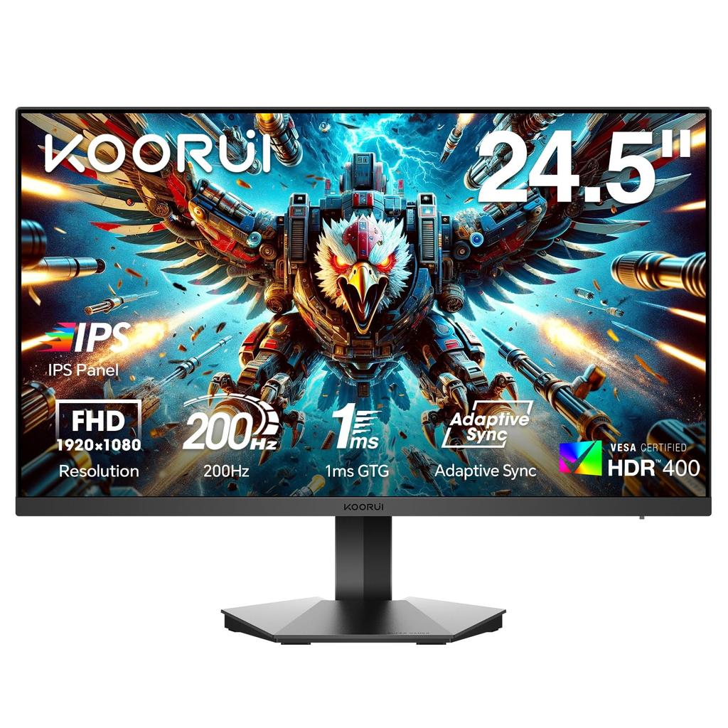 KOORUI G2511P IPS 200Hz 1ms GTG HDR400 Full HD Gaming Monitor with Blue Light Adaptive and VESA Compliant 24.5-inch Anti-Glare 90% DCI-P3 Reduction,