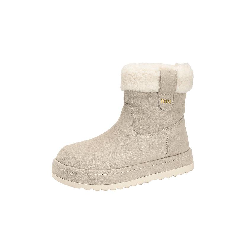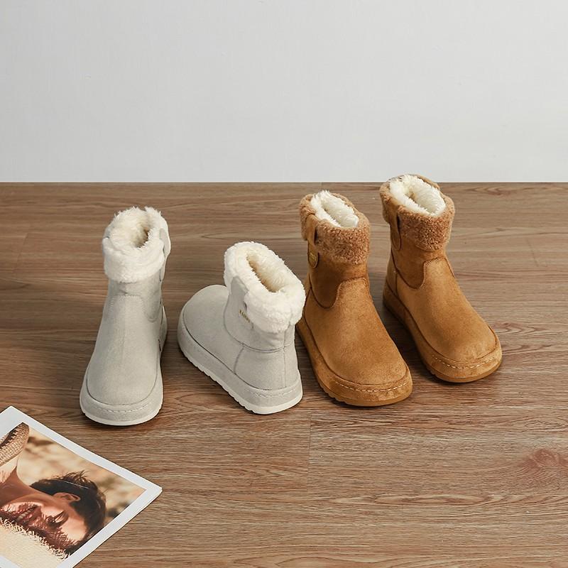 Женские зимние сапоги средней высоты 2025 новая коллекция зимние шерстяные хлопковые туфли с набивкой и утолщением модные теплые короткие сапоги мягкая подошва нескользящие