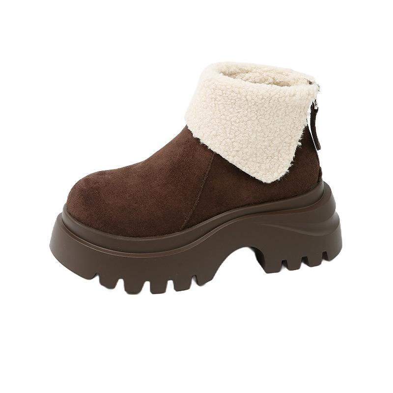 Женские зимние ботинки 2025 новая осенняя модная универсальная толстоподошвенная обувь на платформе, утепленная бархатом, теплая хлопковая обувь