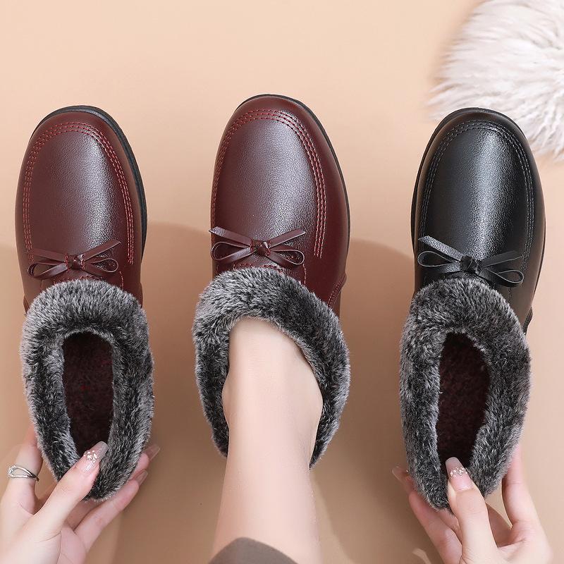 Мамины туфли хлопковые туфли зимние мягкая подошва удобные кожаные туфли женские среднего и пожилого возраста теплые туфли нескользящая плоская подошва бархат