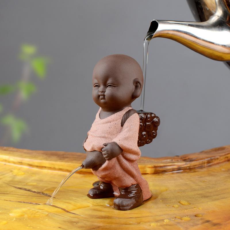 Креативный питомец для чая из фиолетового песка, брызгающий водой, писающий, украшение, милый маленький монах, можно выращивать, чайное искусство, чайный поднос, персонализированный чайный набор