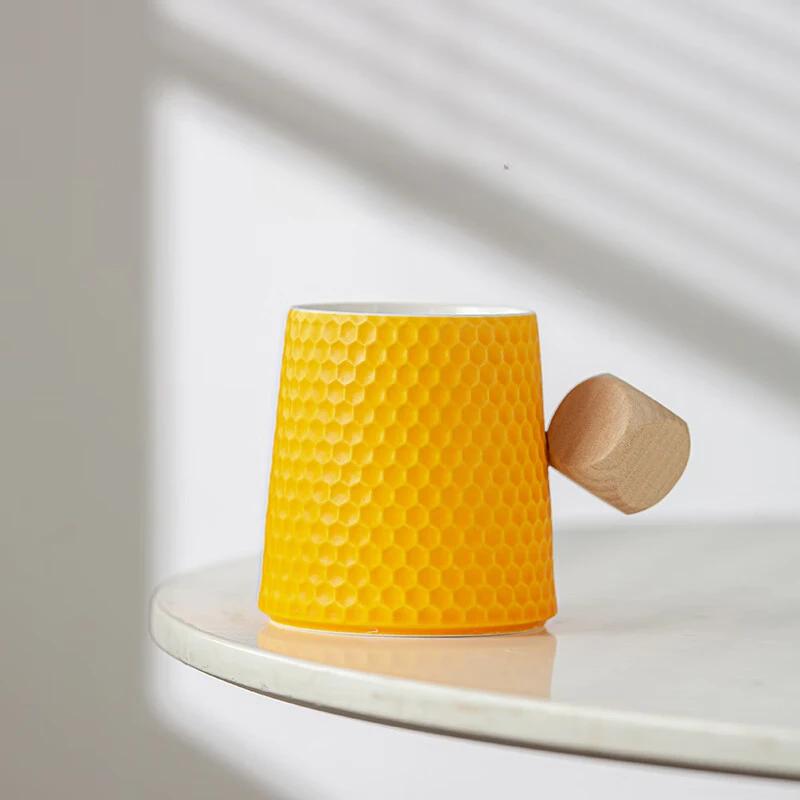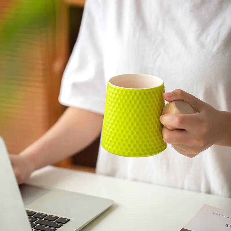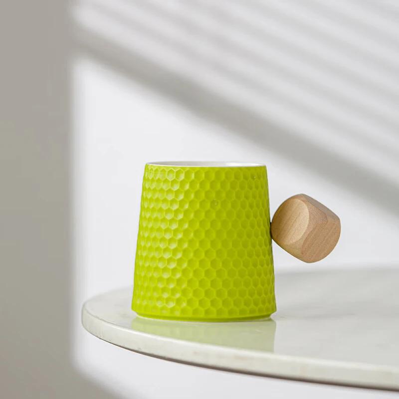 350ml Water Cube Texture Tea Cup Ceramic Cup, Creative Honeycomb shaped Water Cup, Morandi Colorful Festival Gift Coffee Cup