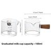 1 шт. Стеклянная мерная чашка с деревянной ручкой Стеклянная мерная чашка для эспрессо Двойная Одинарная горловина Молоко Кофе Прозрачная кружка Кофейные принадлежности