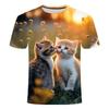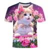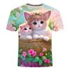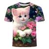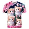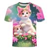 Детская летняя одежда с милым принтом кошки с коротким рукавом, мультяшный красивый топ для девочек, повседневная футболка с круглым вырезом