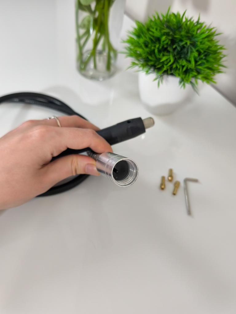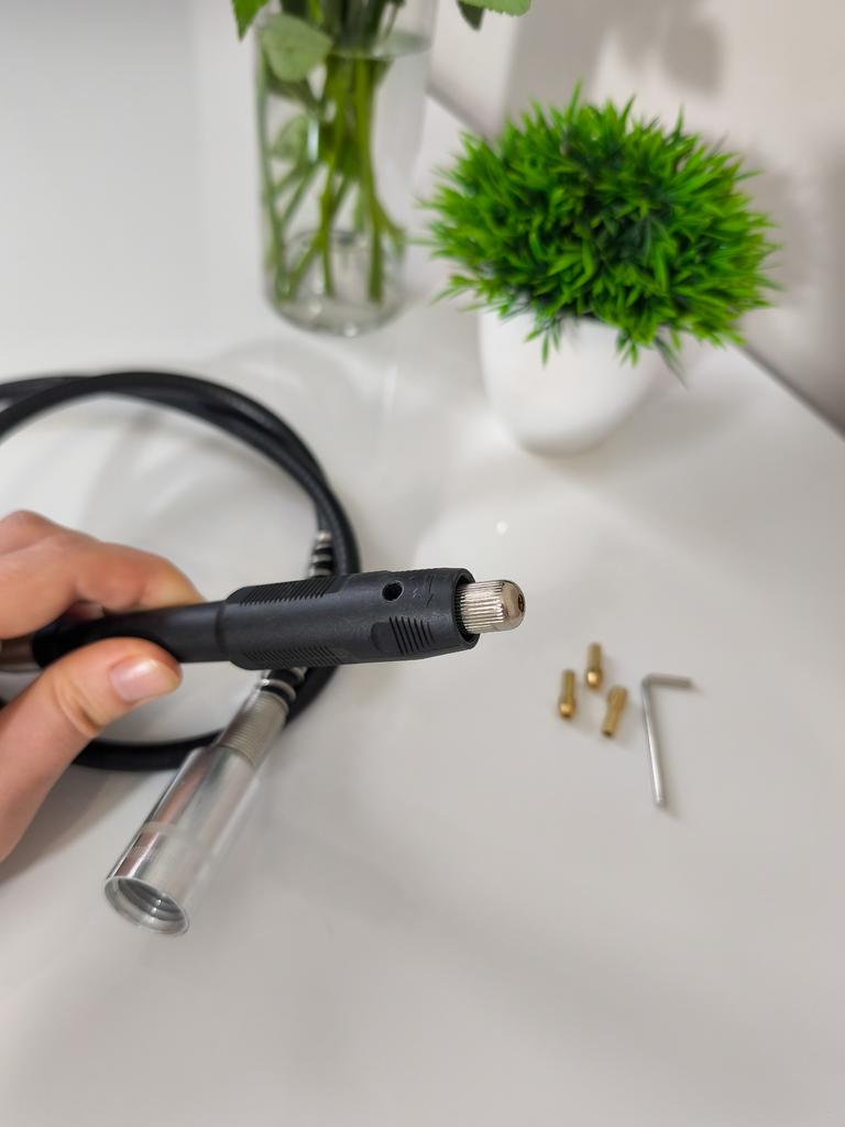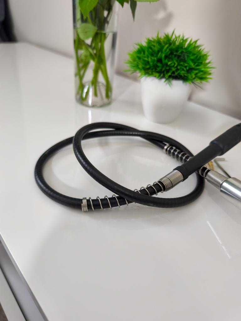 ⚙️Универсальный гибкий вал для электрической роторной шлифмашины (например, дрели или гравера). * Назначение: Обеспечивает гибкость и маневренность при работе в труднодоступных местах или для высокоточных операций (гравировка, шлифовка, полировка). * Комплект: Включает сам гибкий вал, патрон-наконечник, латунные цанги (3 шт.) разного размера и ключ для их замены. * Функция: Позволяет использовать основной инструмент как удаленный, точный наконечник. Рекомендую 👍 Ставлю ⭐ ⭐ ⭐ ⭐ ⭐ Спасибо продавцу ❤️ и Joom ❤️