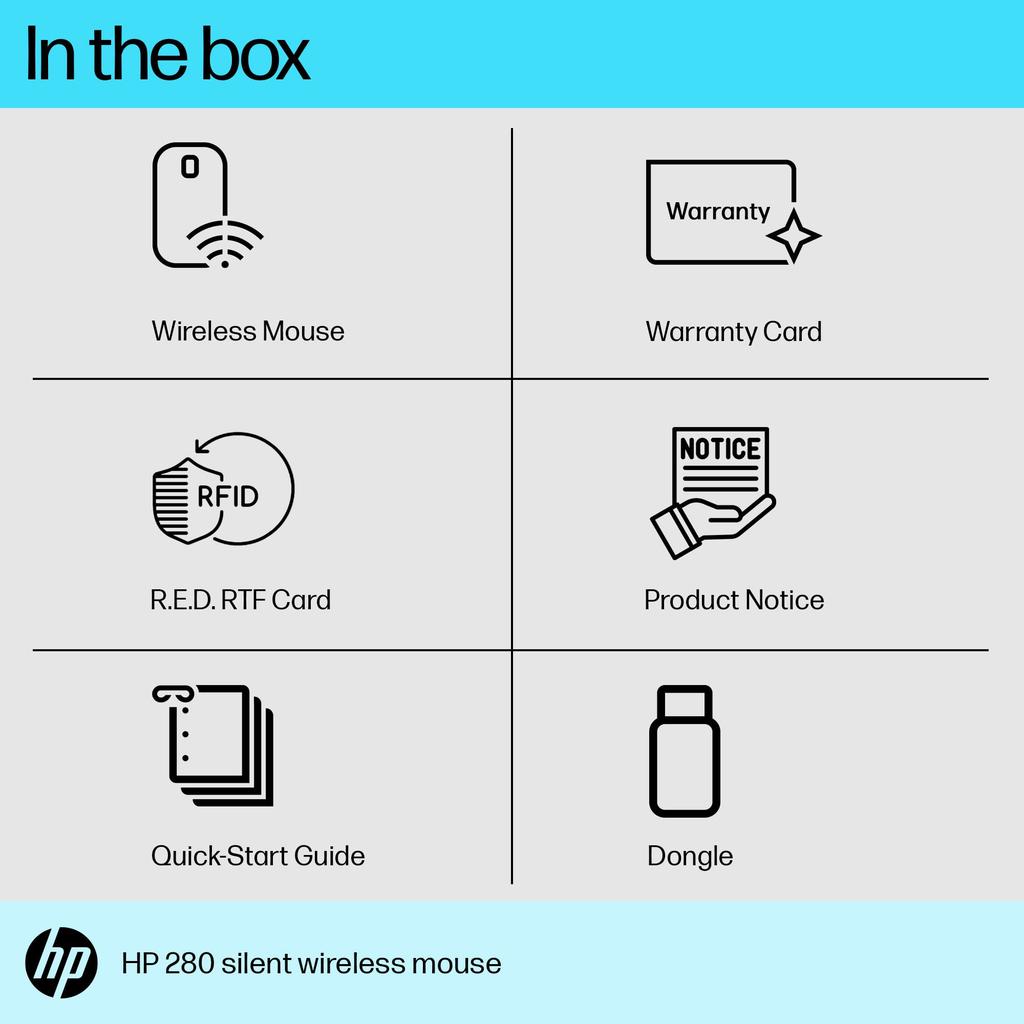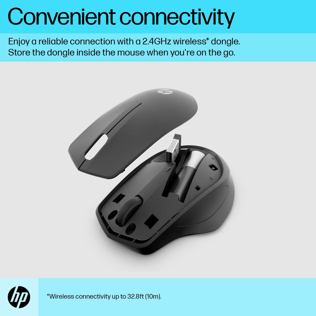 Беспроводная мышь HP 280, Тихий клик, BlueLED, Беспроводная, Срок службы 18 месяцев, Эргономичная, Черная (Номер модели: 19U64AA#UUF), Совместимо с Mac, Windows PC,