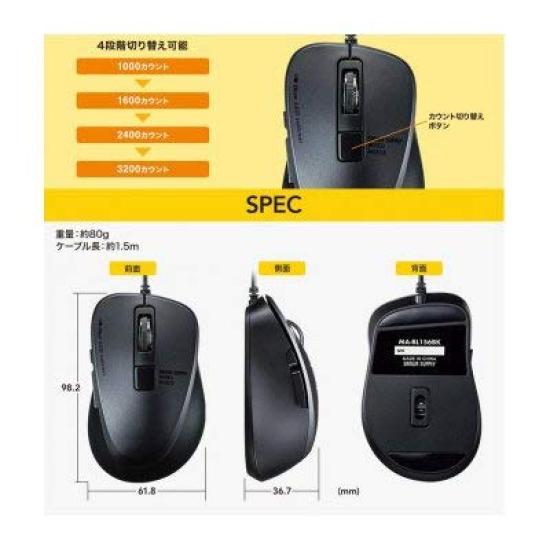Бесшумная проводная мышь с синей светодиодной подсветкой (5 кнопок) MA-BL156BK