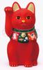 Tokoname Ware Red Maneki Neko Right Hand 19cm Tall Made in Japan