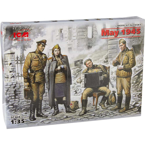 ICM "1/35 Советские солдаты" (3 солдата, 1 женщина) Берлин май 1945" пластиковая модель. *Этот продукт представляет собой пластиковую модель, требующую сборки и покраски.. *Клей, инструменты, краска и т. д.. требуются отдельно для сборки и покраски. *«Пластиковая модель» является зарегистрированной торговой маркой, принадлежащей Японскому кооперативу производителей пластиковых моделей.. *В данный продукт не входят клеи, краски, инструменты, батареи и т. д.