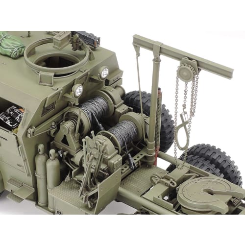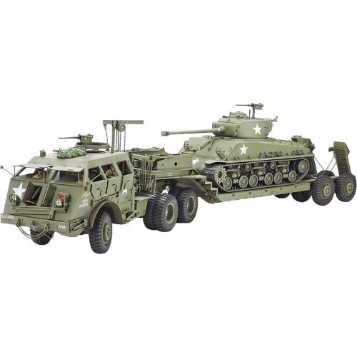 Product introduction This is a plastic assembly kit of the Dragon Wagon, the largest American tank carrier during World War II. Scale 1/35, realistically modeled with a powerful appearance. The tractor's armored cabin is integrally molded using a slide mold, pursuing a realistic and reliable assembly. Bulletproof windows can be opened or closed. The tandem type winch is also reproduced with a rich three-dimensional effect with an efficient parts configuration, and can be assembled while having fun. The trailer with wheel guards and movable skids also has a heavy finish. The tires are made of realistic hollow rubber. A rich set of metal parts such as photo-etched parts, chains, and pipes. It gives a more precise feel to the finished model. The front wheels of the tractor can be steered, and the coupler, skid at the rear of the trailer, and tandem axle unit can also be moved just like the real vehicle. The interior and suspension area are also reproduced with a high level of realism. Includes 4 crew figures of 2 types. Adhesive sold separately. Safety Warning Not applicable