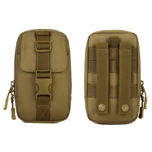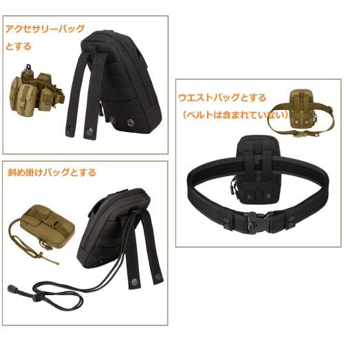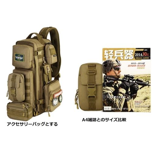 - Structure: One buckle pocket on the front, can store a 5.5 inch smartphone.The main pocket can organize various essentials such as mobile power supplies, knives, GPS devices, cigarettes, keys, etc.The main pocket has three compartments that can store bank cards, commuter passes, receipts, etc.The smartphone holster on the other side can store a smartphone of 6 inches or less.Can be attached to belts, bicycles, and Molle compatible bags.It can also be worn over the shoulder by attaching a detachable rope.Easy 2-way design that can be used as an accessory bag and a shoulder bag.