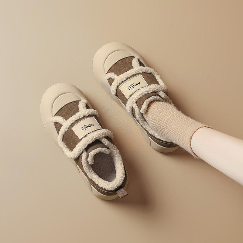 Ogu Shiden бархатные хлопковые туфли женские 2025 новая зима уродливые дутые туфли утолщенная спортивная платформа милые кеды