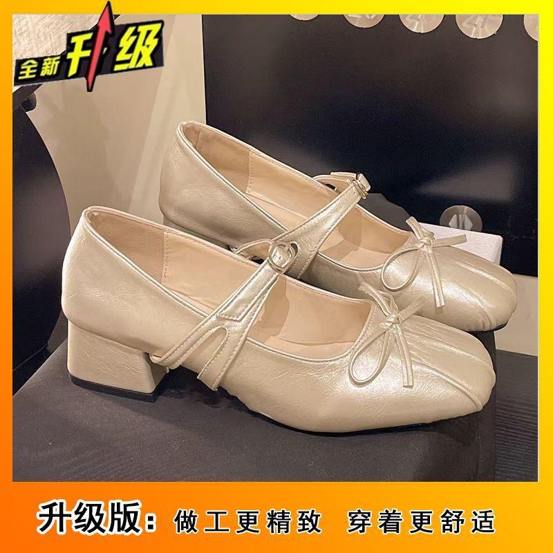 Fashion versatile and comfortable women's thick heel single shoes French celebrity temperament with skirt single shoes 2025 spring and summer new