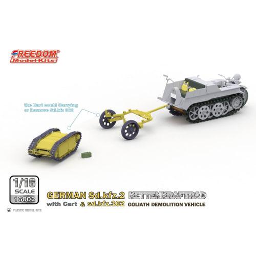 Freedom Model Kits 1/16 Scale World War II German Sd.kfz.2 Kettenkraftrad and Sd.Kfz.302 Goliath Light Explosive Transport Vehicle Cart Set, Plastic M