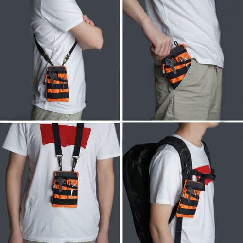 - 【Large Capacity 4 Pockets】The back of the pocket tool organizer has 2 accessory pockets and 1 zipper pocket for storing mini flashlights, folding knives, tactical pens, large multi-tools, and other EDC gear.The large pocket on the top can usually hold a 3.5''*5.5'' notebook or mobile phone (screen size ≤6.5'').MOLLE plug-in design can hold tools with pocket clips, which saves a lot of space.