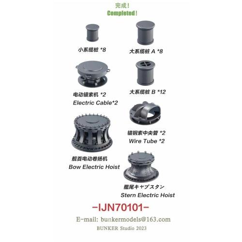 Bunker Studio 1/700 Japanese Yamato-class Battleship Anchor Windlass and Mooring Bolt Set, Plastic Model Parts, BSTIJN70101