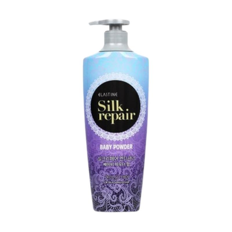 Представляем кондиционер Elastine Silk Repair, обогащенный протеином шелка, аргановым маслом, маслом моринги и оливковым маслом — роскошная формула, разработанная для восстановления мягкости, блеска и жизненной силы ваших волос.