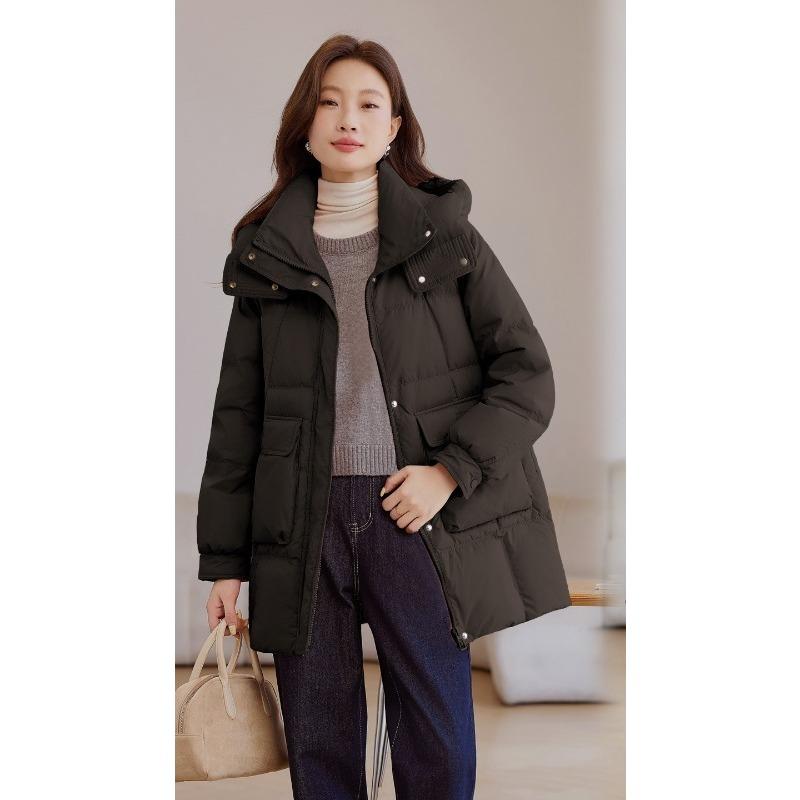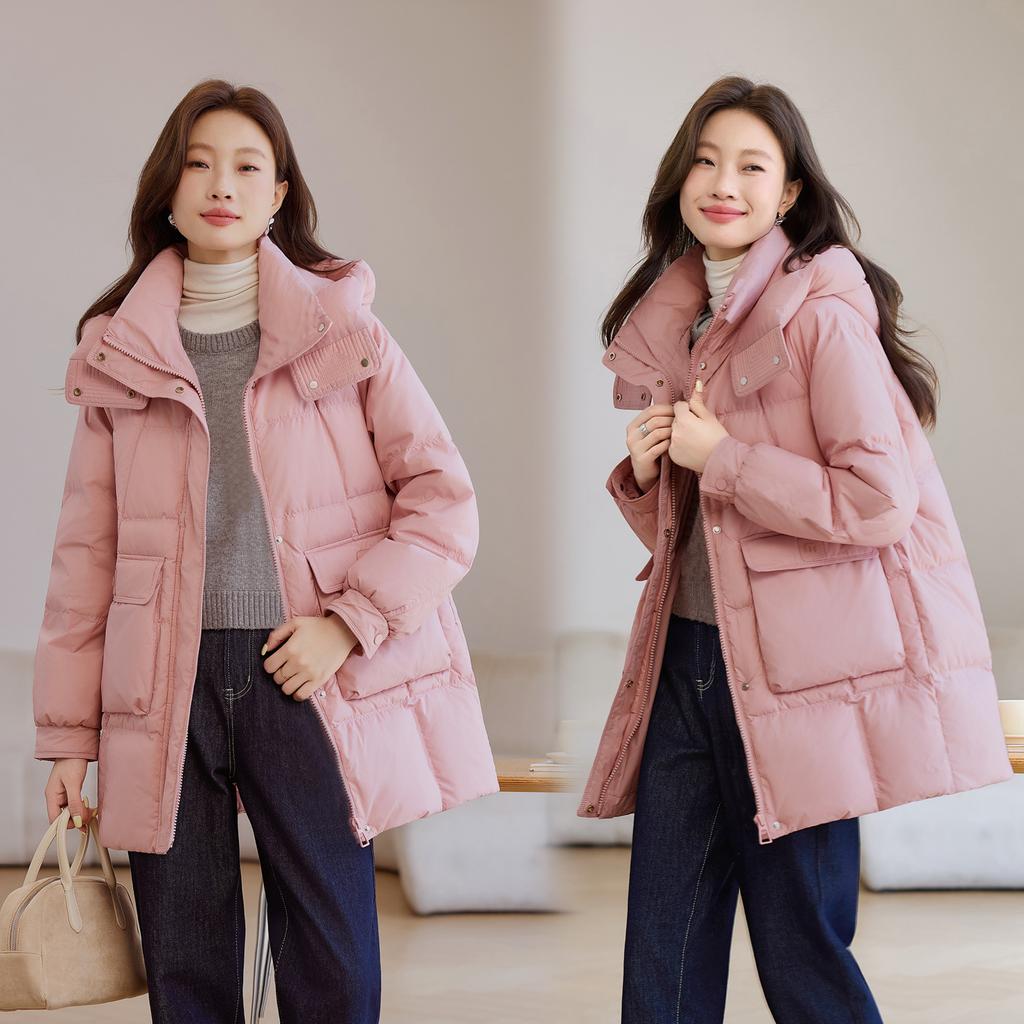 Пальто из хлопка на пуху нового стиля для женщин, средней длины, с капюшоном, утолщенное, модное, для невысоких, утолщенное хлопковое пальто