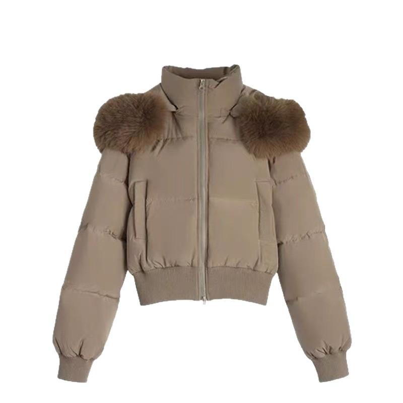 Пуховик нового стиля с меховым воротником и капюшоном, с поясом и укороченная куртка-пуховик с утолщенным слоем пуха для женщин
