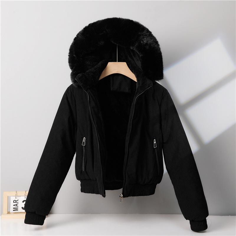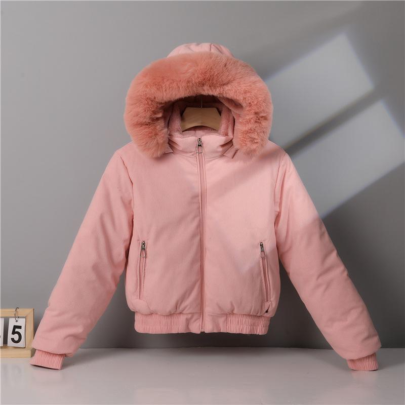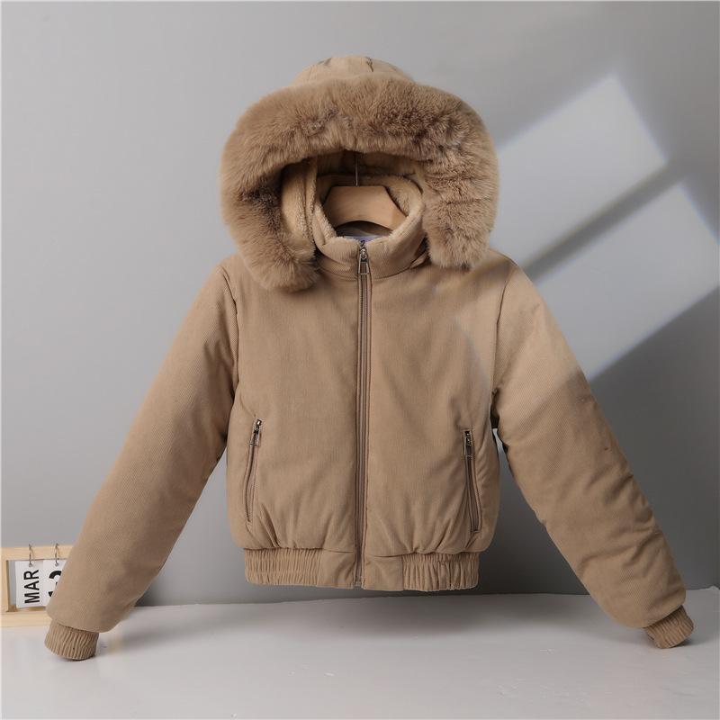 Пуховик с меховым воротником нового стиля для женщин, короткая куртка в корейском стиле плюс бархат, зимняя утолщенная хлопковая куртка для маленьких людей