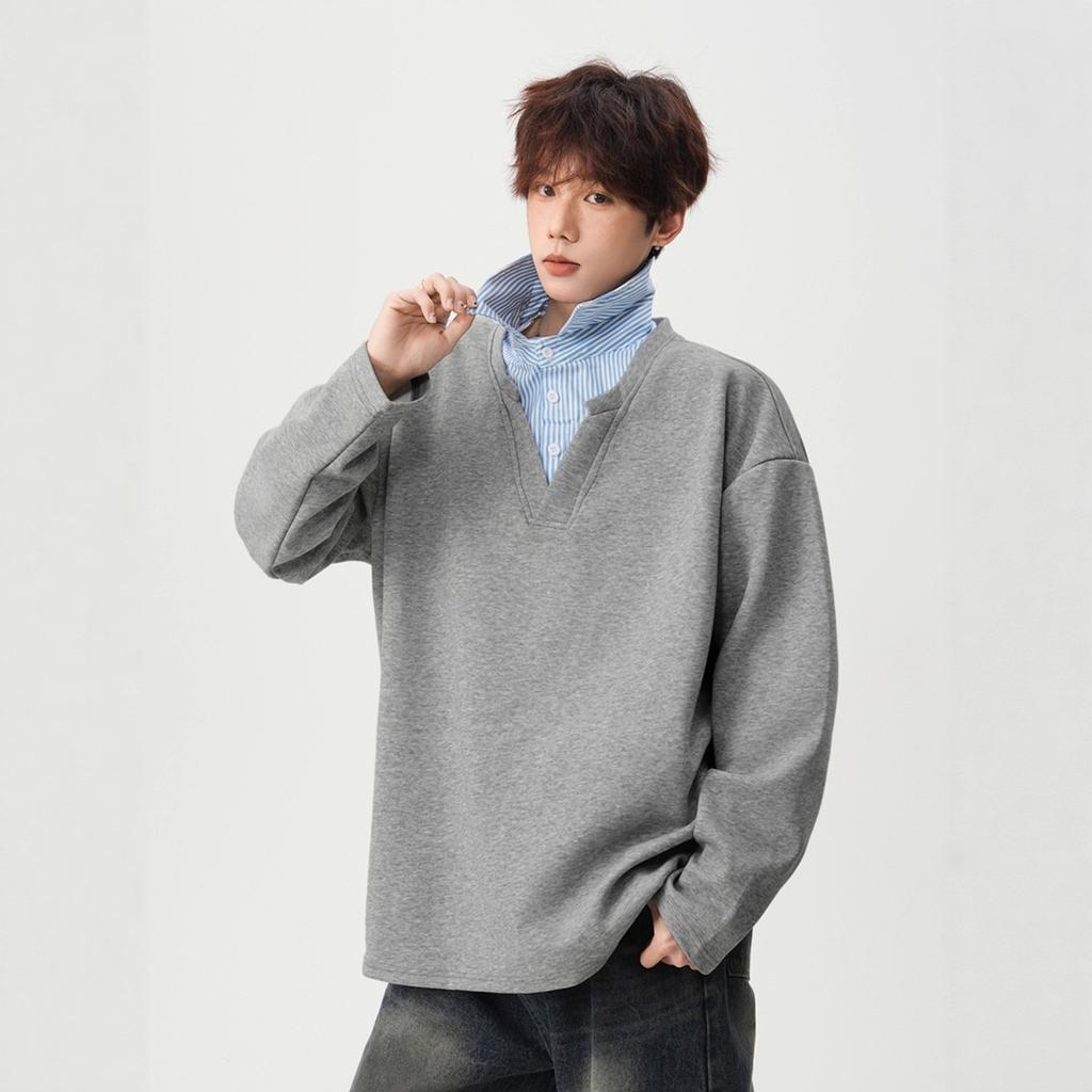 Мужской и женский осенний свитер-двойка свободного кроя с рубашечным воротником и длинными рукавами, дизайн футболки, универсальная куртка