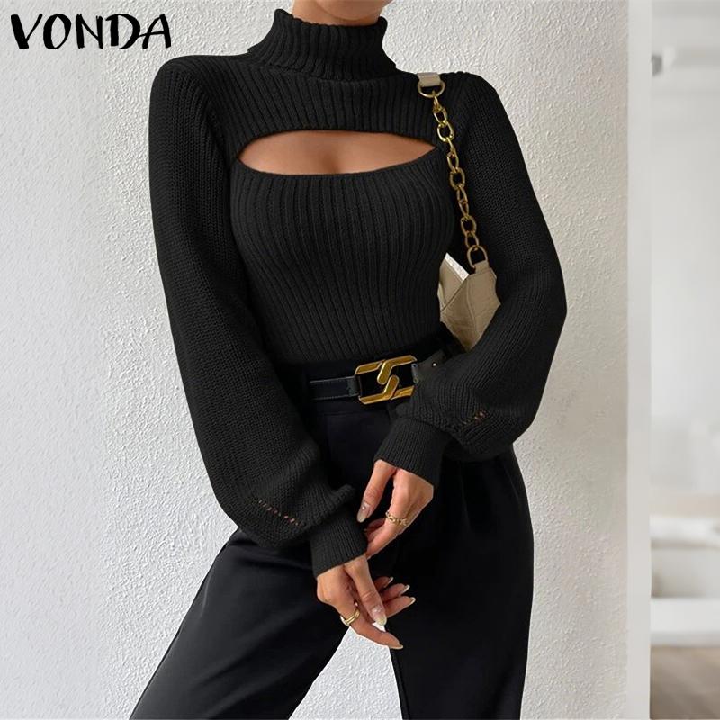 VONDA Женские водолазки с длинным рукавом, вырезами, повседневные облегающие вязаные свитера, джемперы — купить товар онлайн с бесплатной доставкой по всему миру!