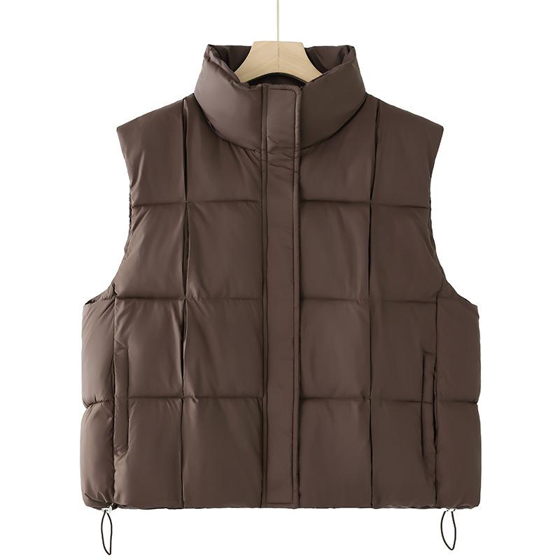 Осень и Зима Новый Хлопковый Жилет Женский Простой Модный Короткий Хлопковый Жилет с Воротником-стойкой Без Рукавов Куртка-жилет