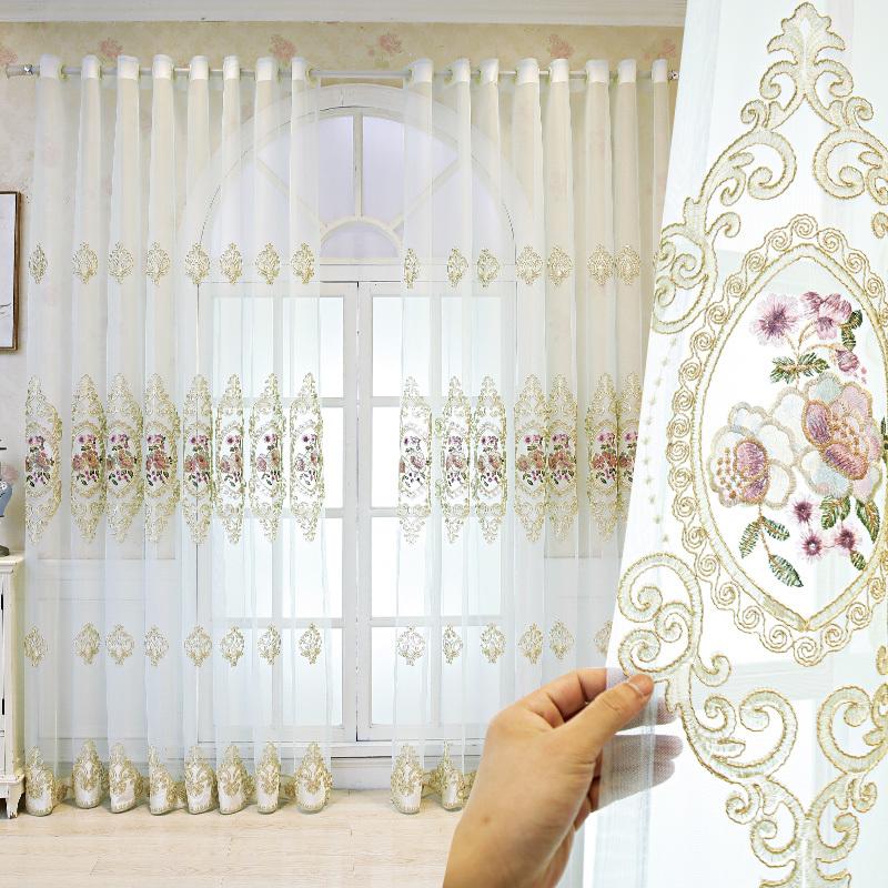1 шт. Элегантная прозрачная штора с цветочной вышивкой, скандинавский стиль с розовыми и коричневыми цветами, дизайн с кулиской для декора спальни и гостиной