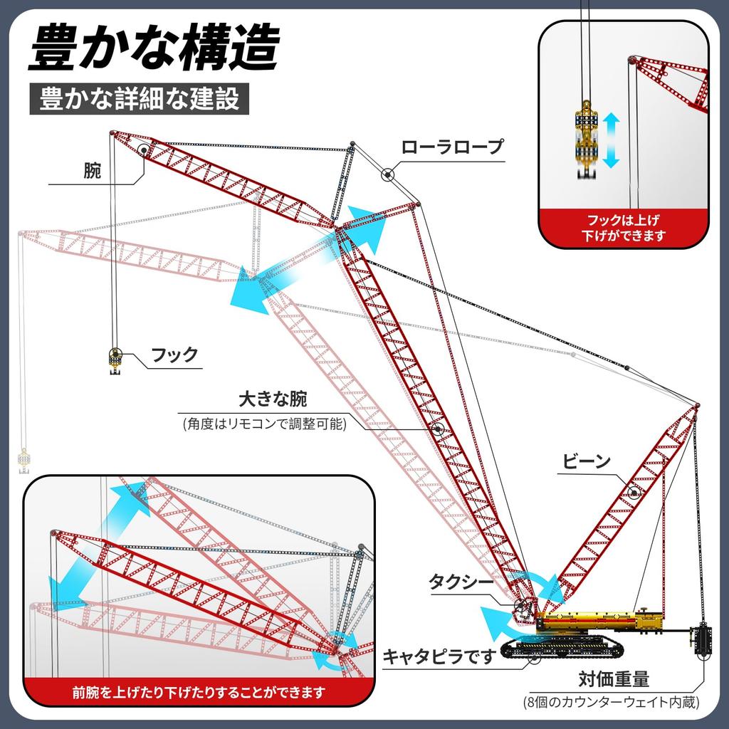 Mould King 17015 Набор строительных блоков Технический гусеничный кран, 188 см в высоту LR-13000 Гусеничный кран Caterpillar, Набор строительных блоков автомобильного крана с 6 двигателями с двойным