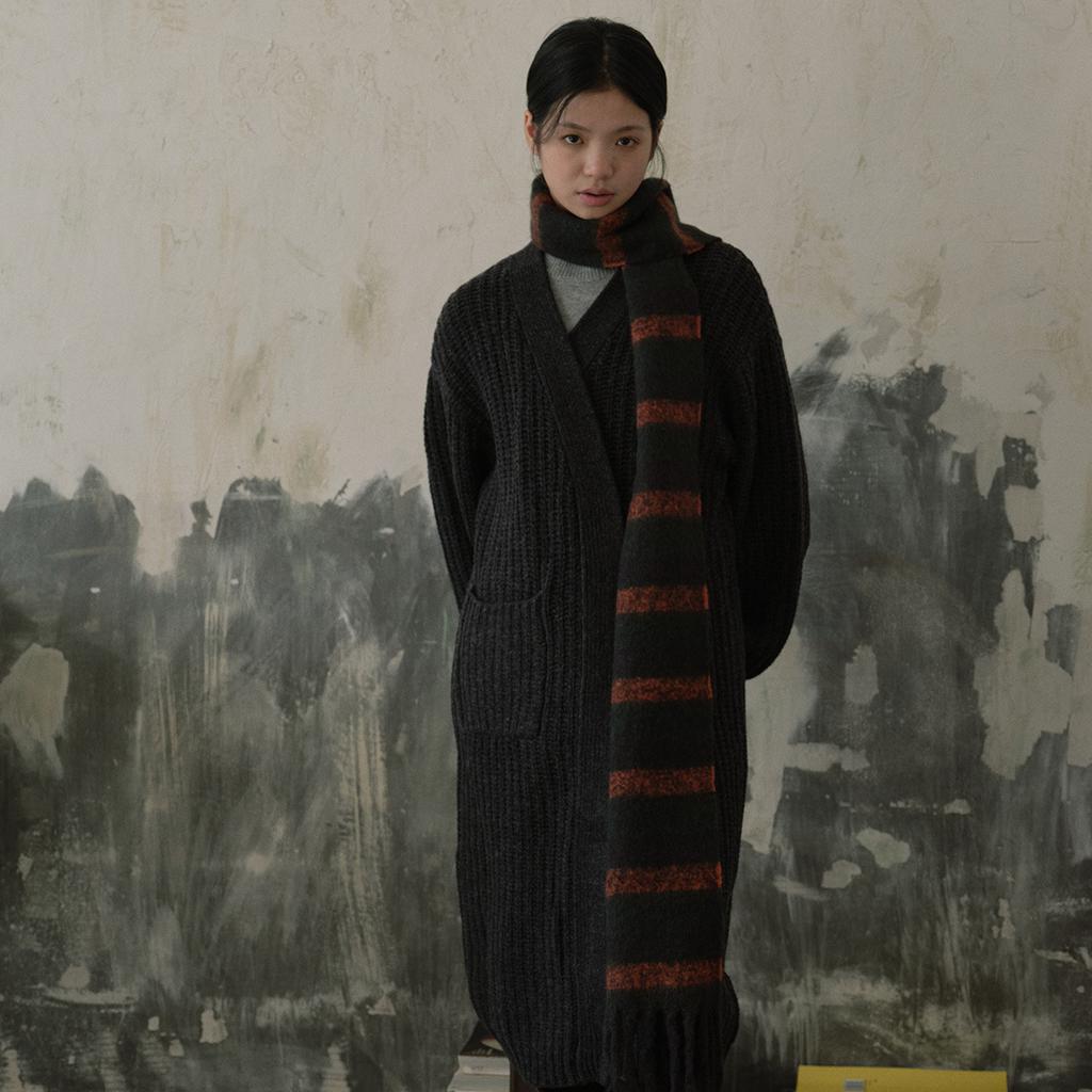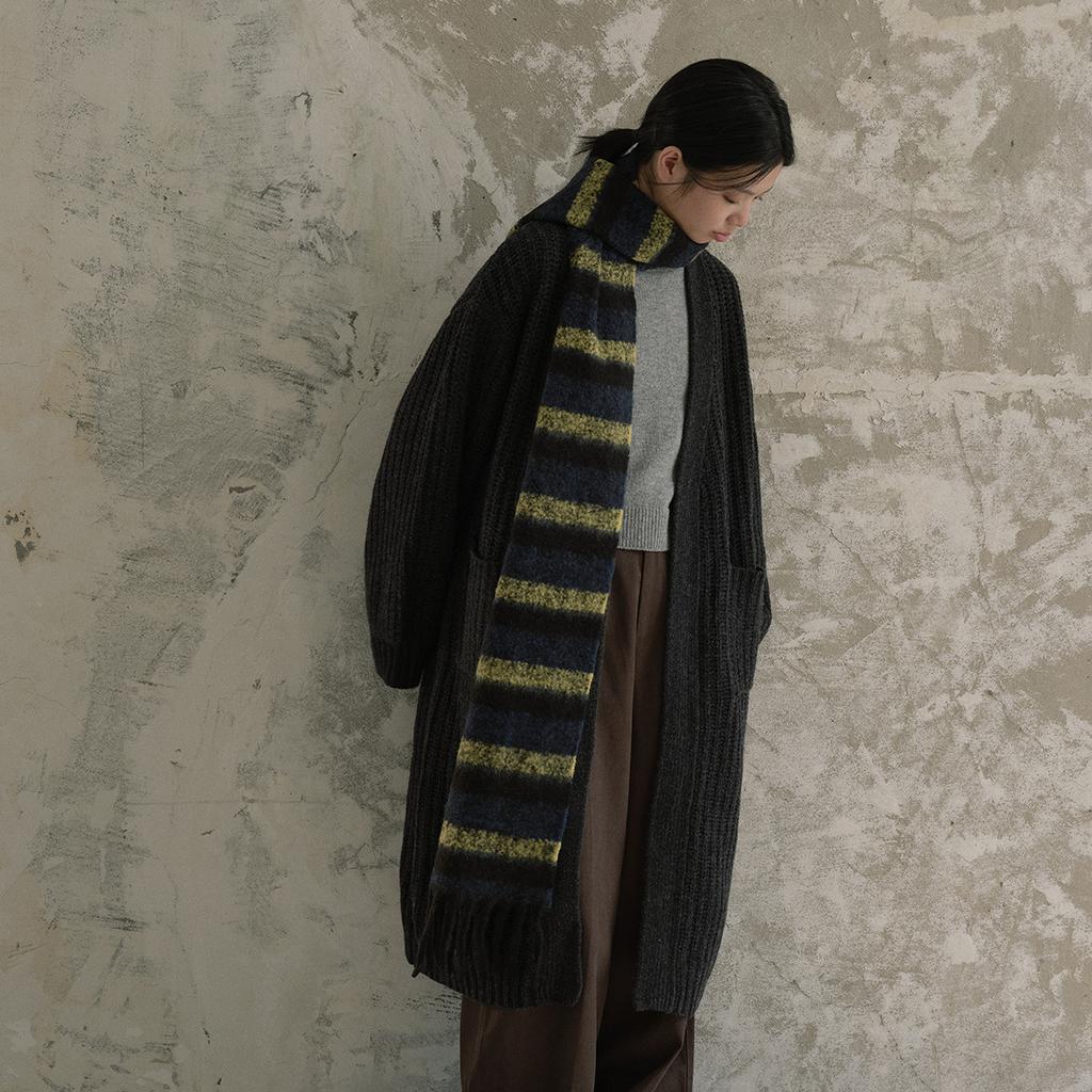 Neutral Color Block Striped Tassel Small Scarf for Women in Winter Soft Student with Wool Blended Scarf